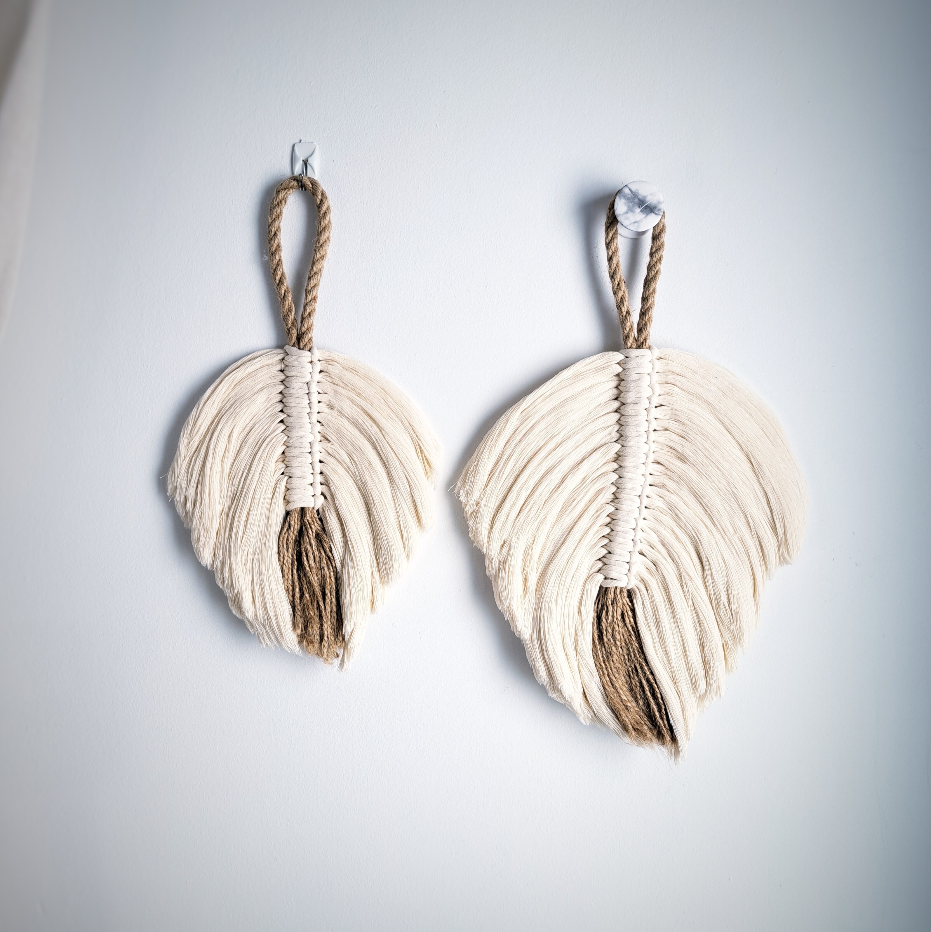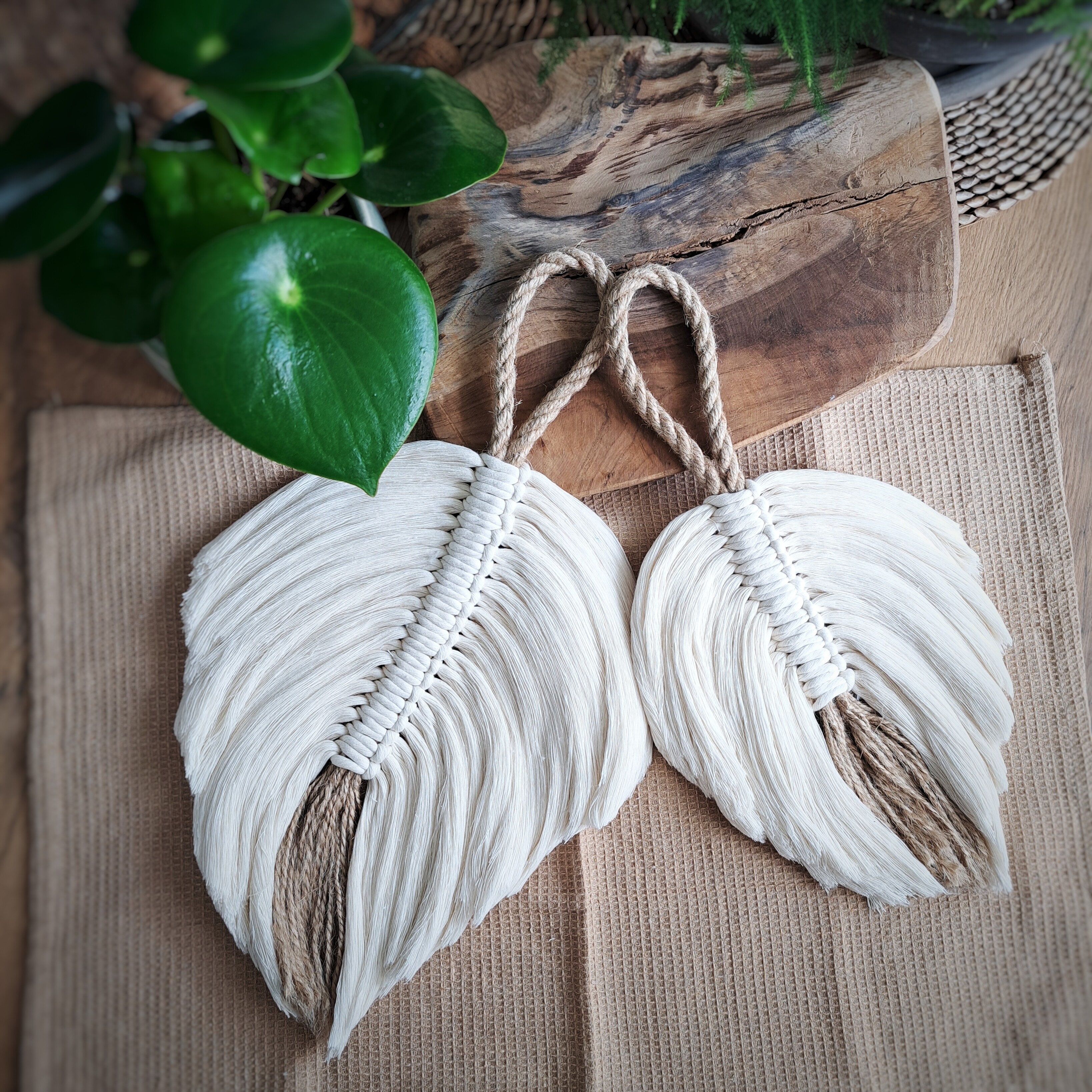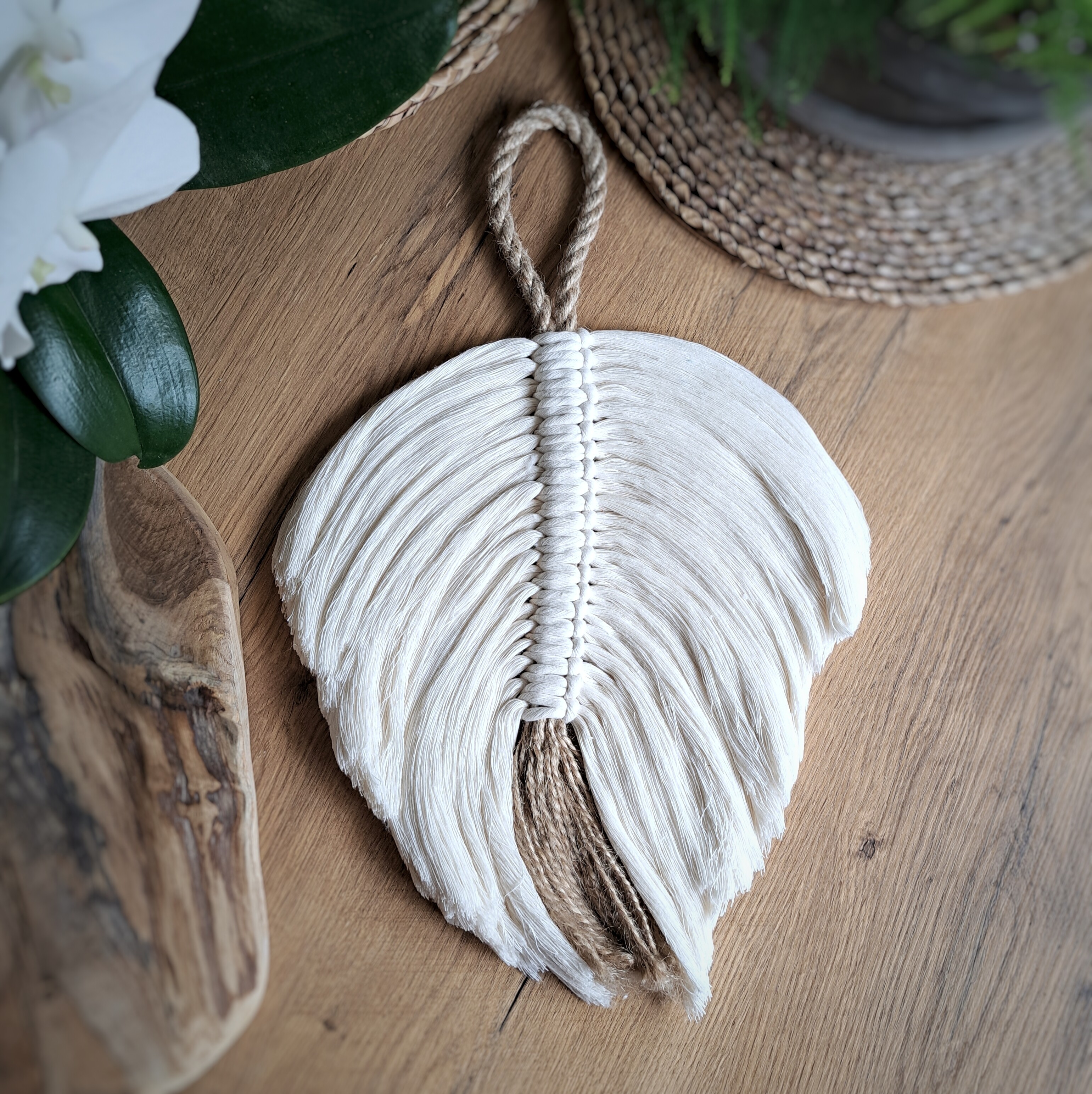 Ta rustykalna ozdoba ścienna jest dostępna w dwóch rozmiarach: rozmiar liścia: M - 32 x 35 cm; S - 22 x 25 cm, plus pętla sznurkowa o długości ok. 13 cm.