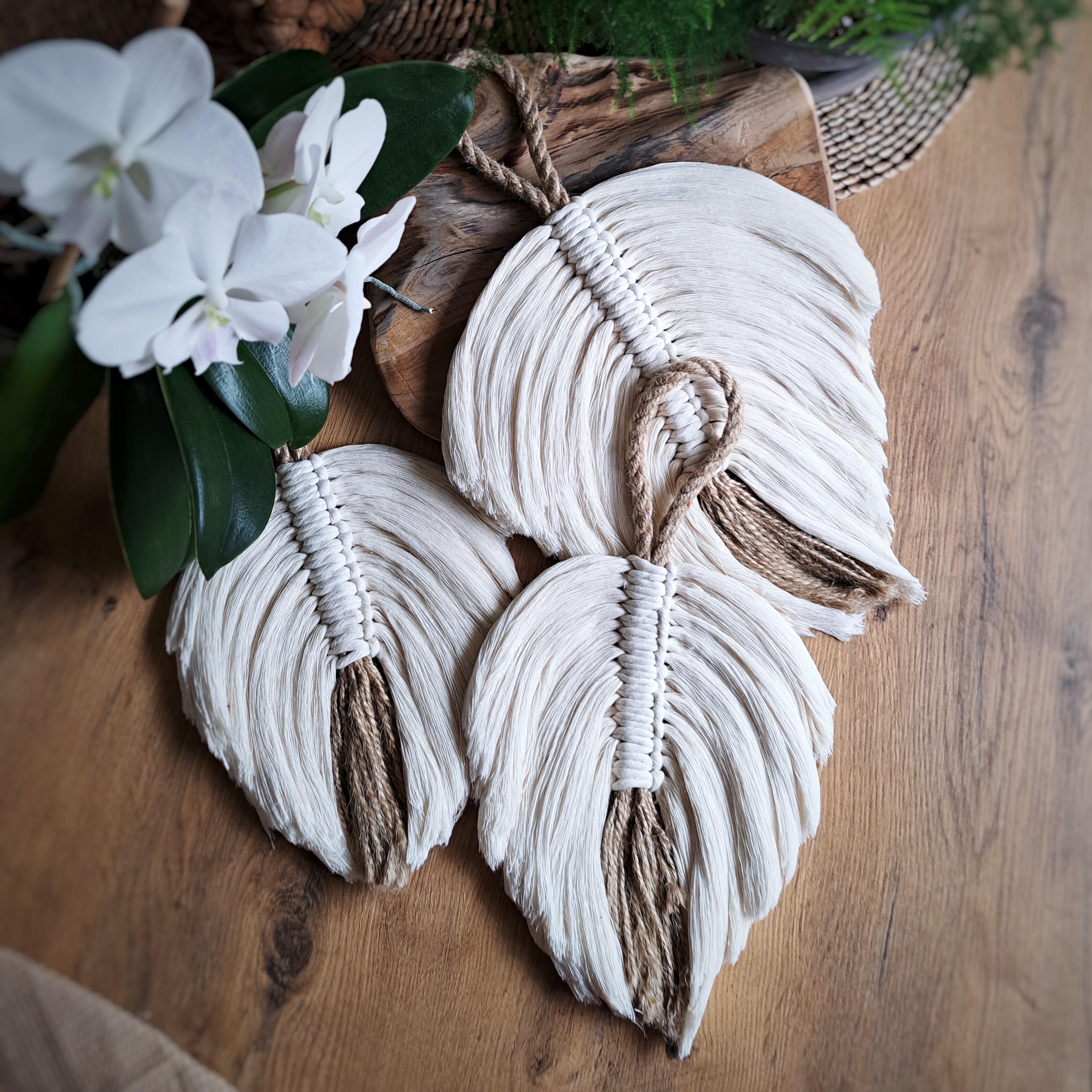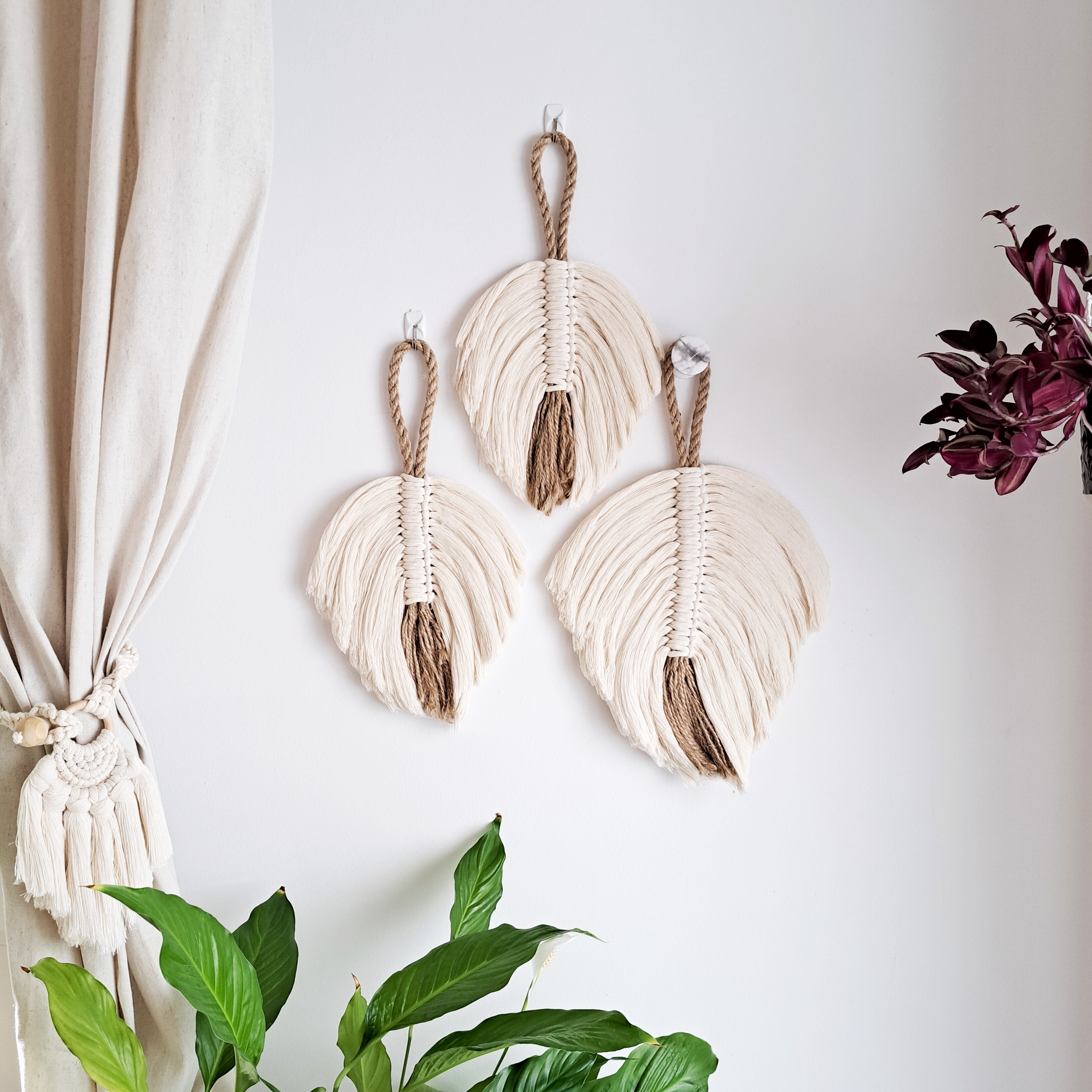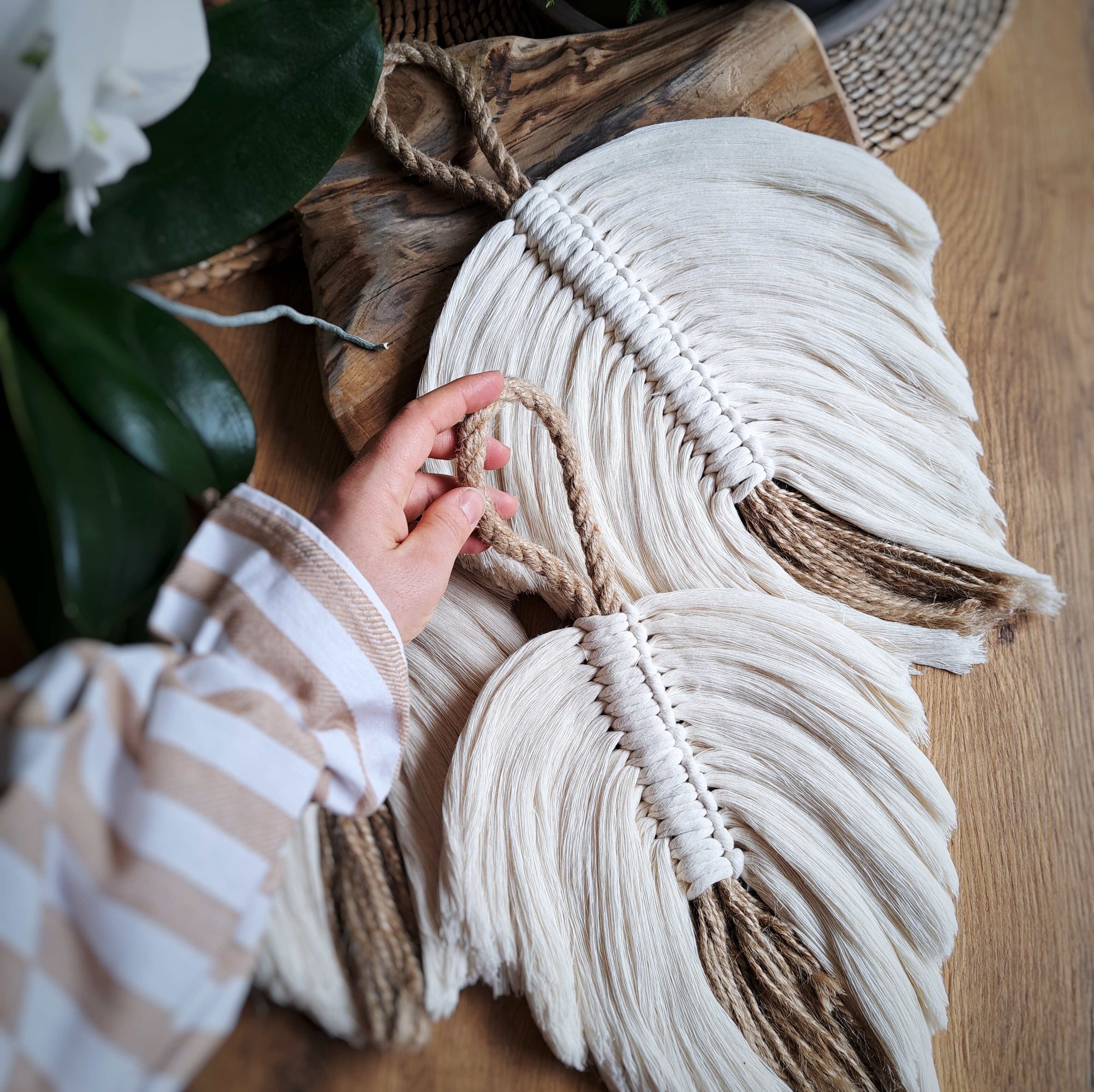 Ta makrama ścienna jest wykonana ręcznie z przetworzonej bawełny organicznej.