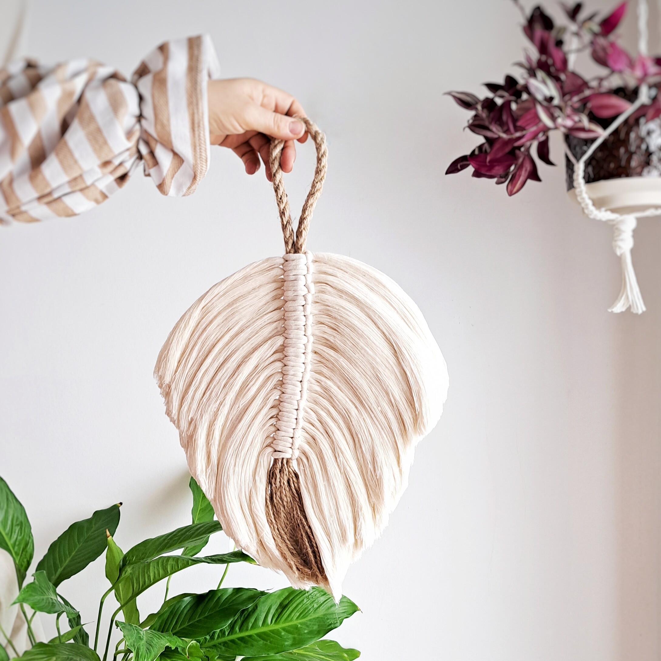 W środku znajduje się pasmo sznurka jutowego. Zawsze będzie w tym samym kolorze, co na zdjęciach, bez względu na to, jaki kolor liści wybierzesz.