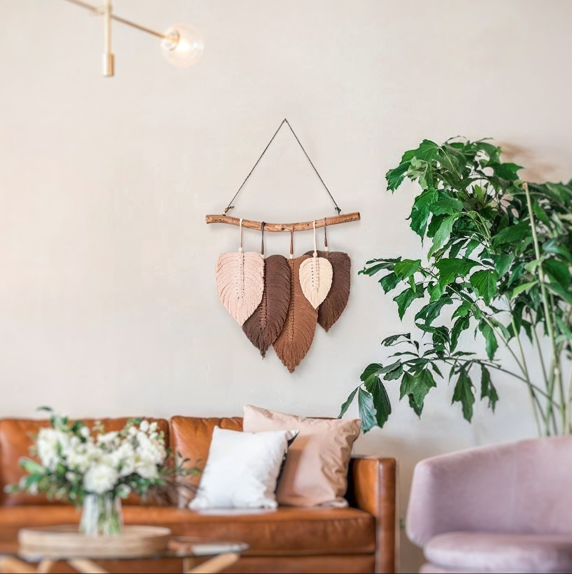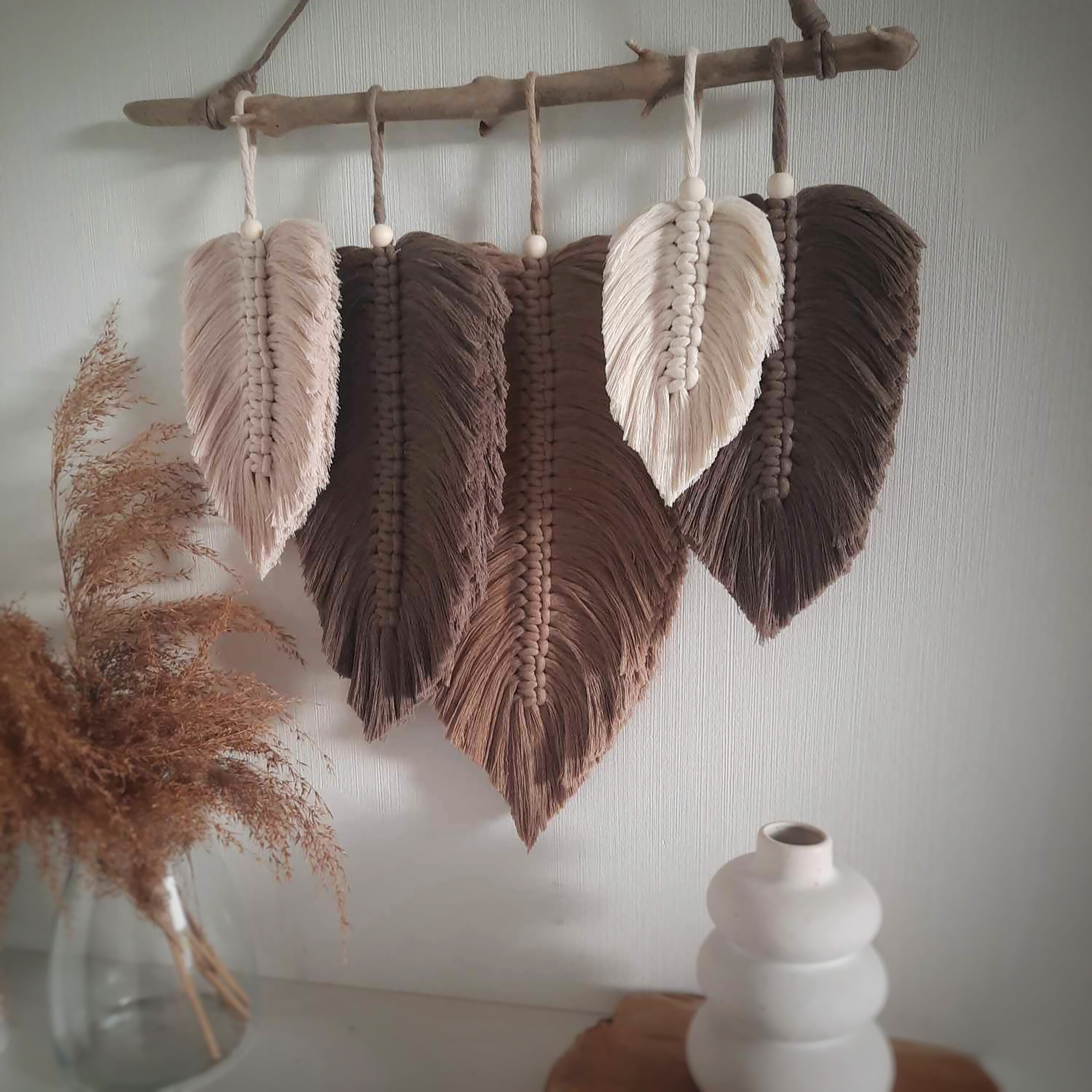 Ta makrama ścienna jest wykonana z przetworzonej bawełny organicznej.