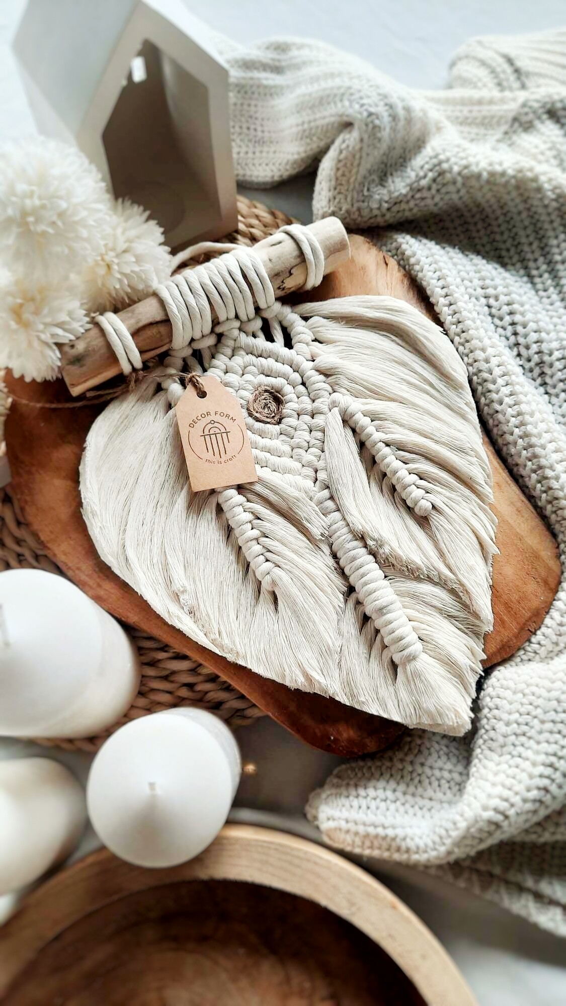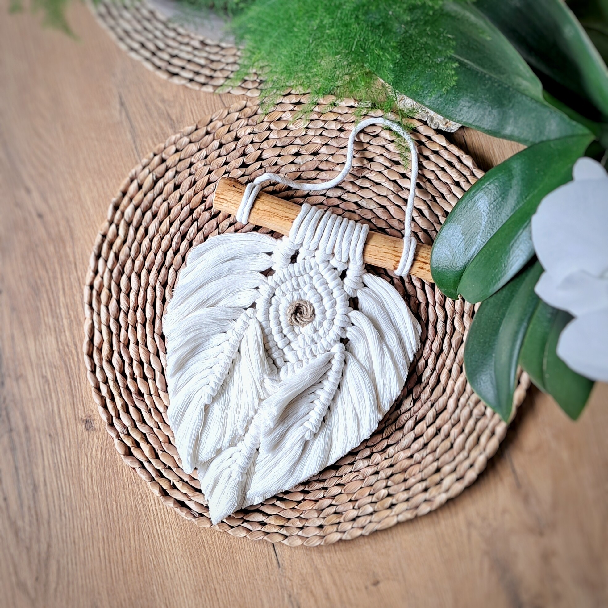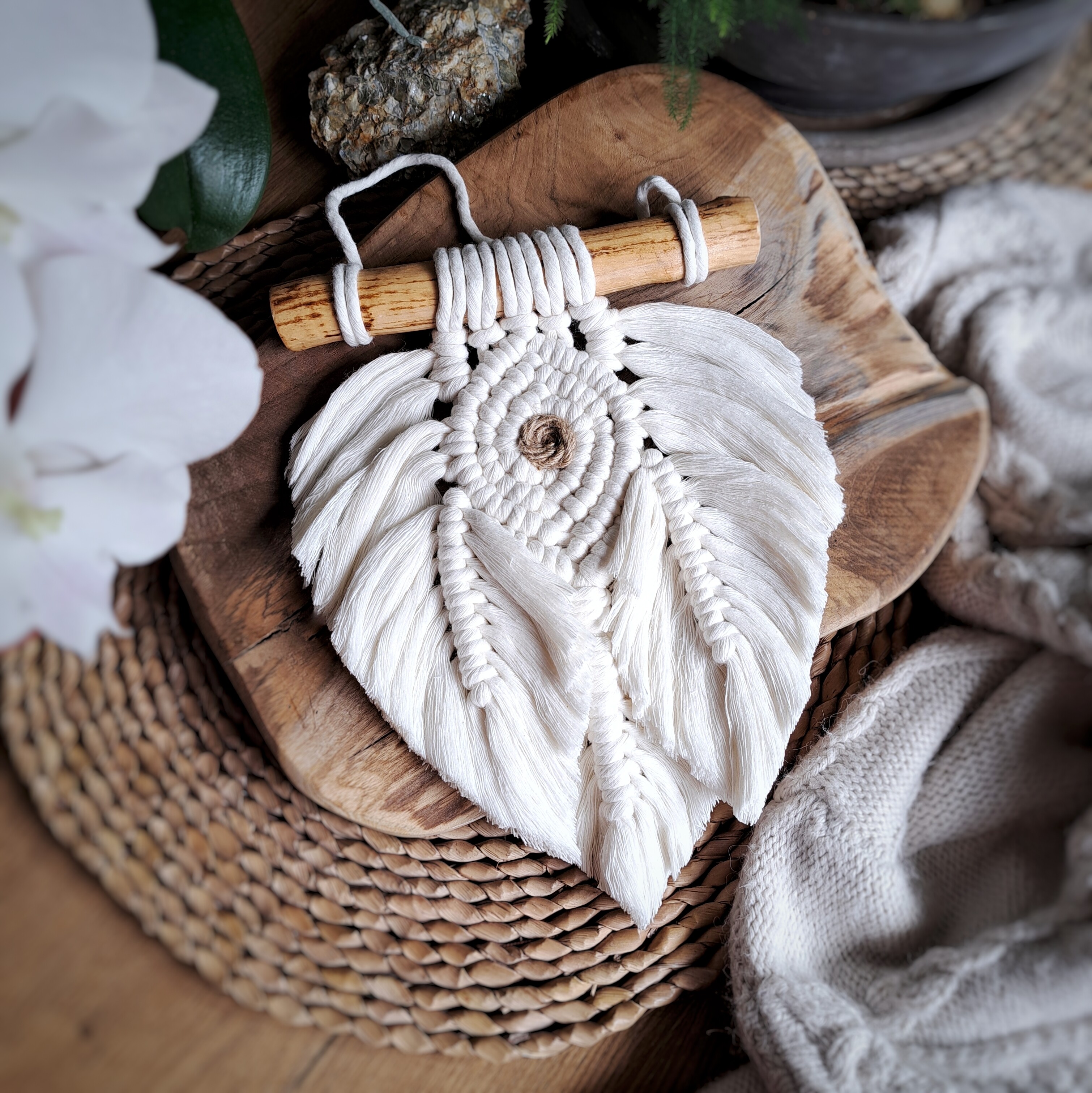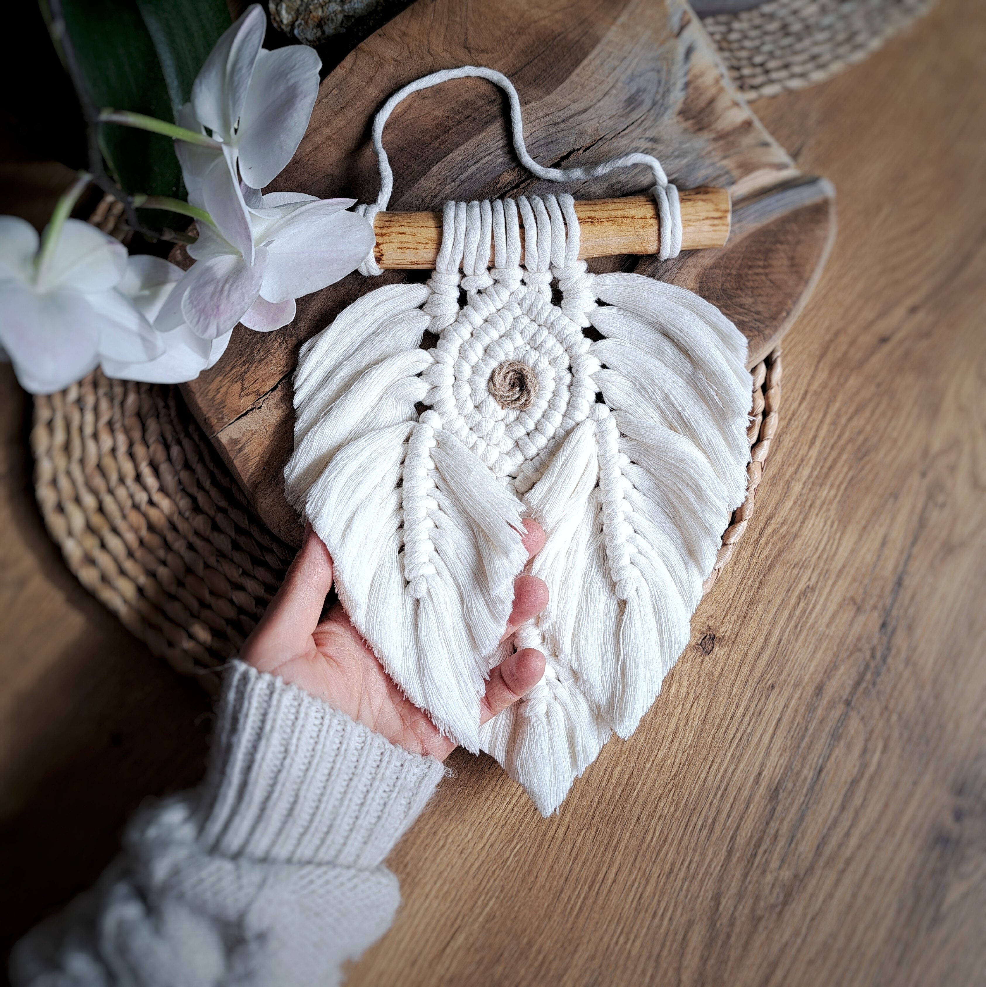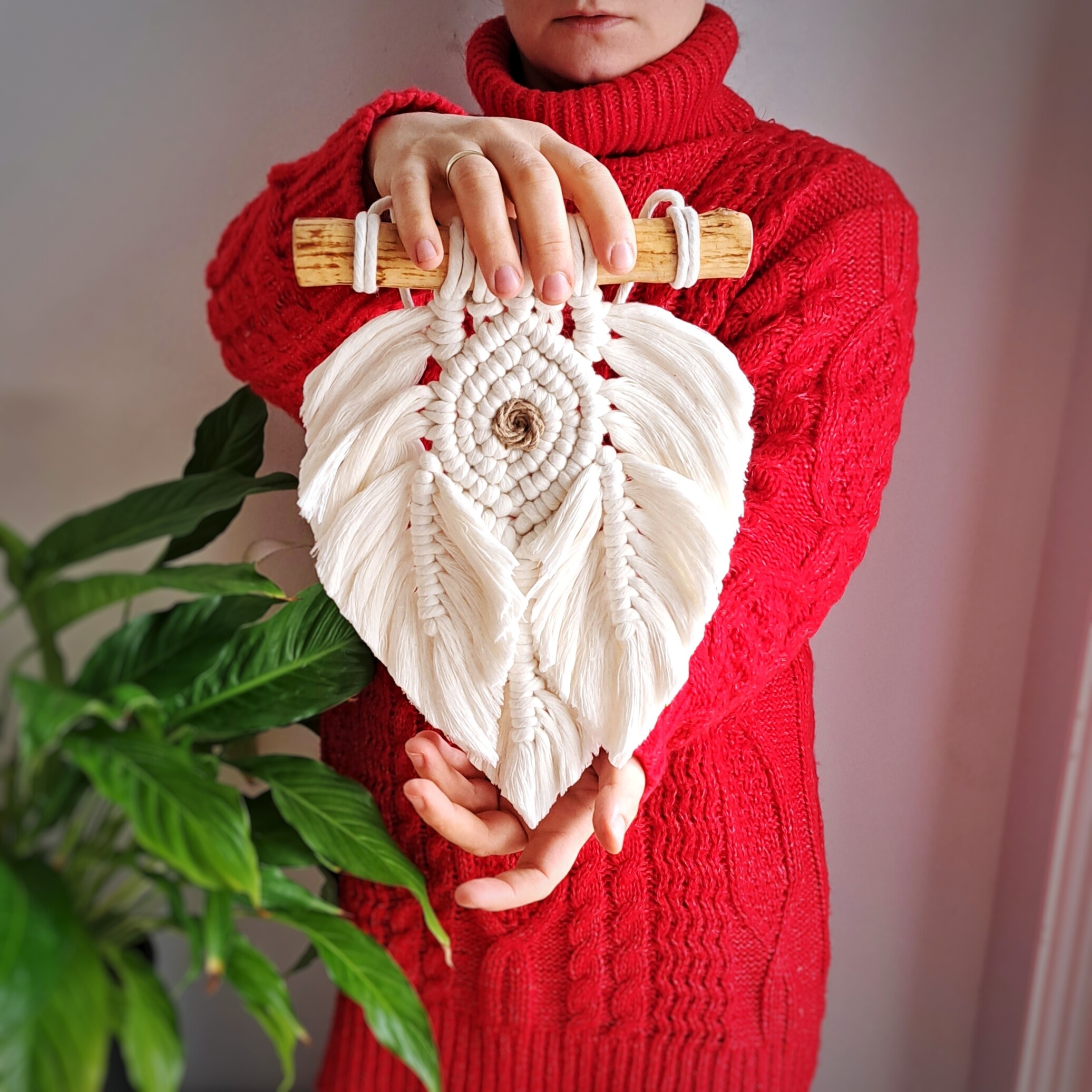 Ta ścienna makrama w kształcie liścia to doskonały wybór, aby nadać odrobinę stylu boho Twoim wnętrzom, takim jak salon, sypialnia czy miejsce pracy.
