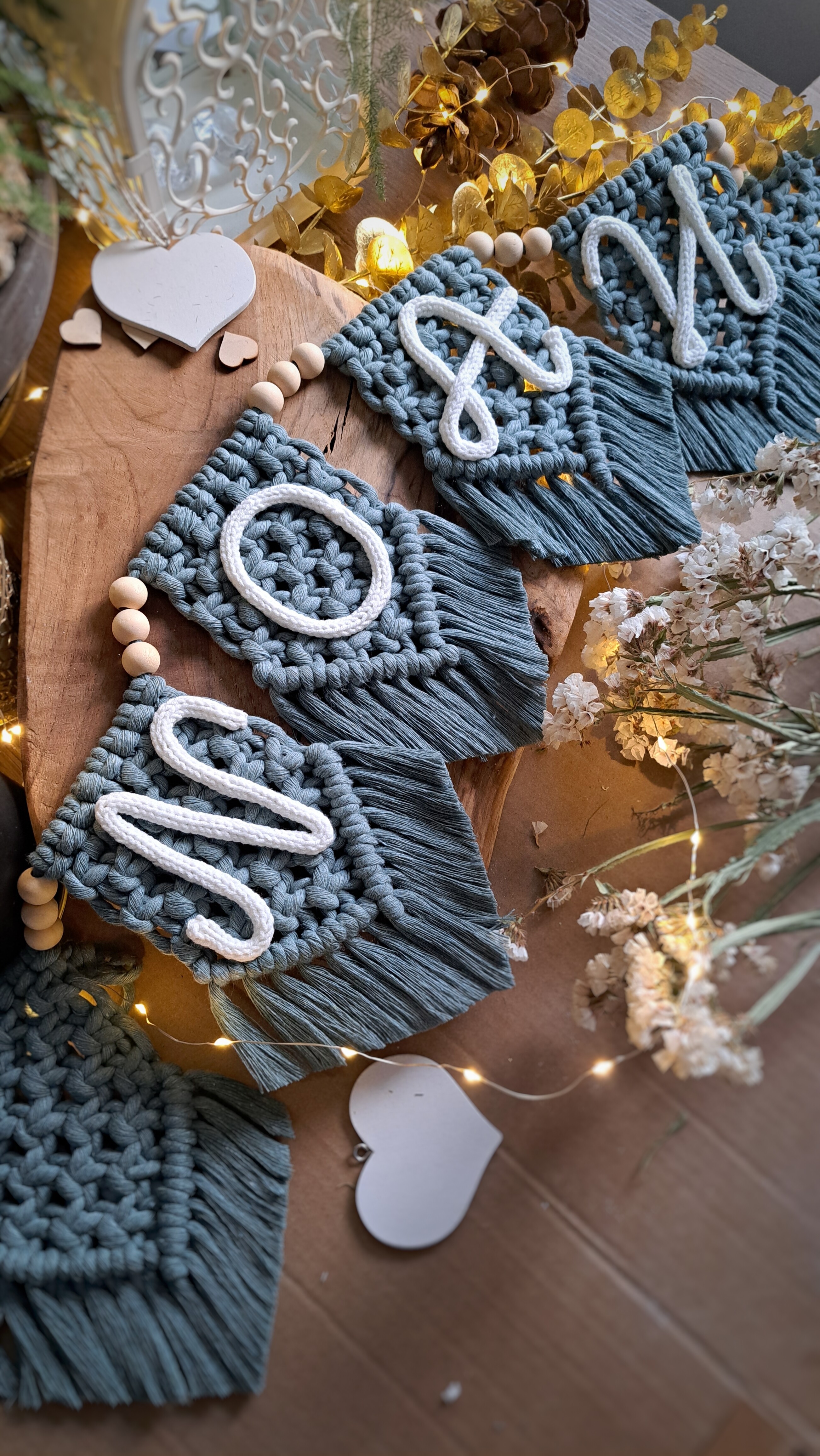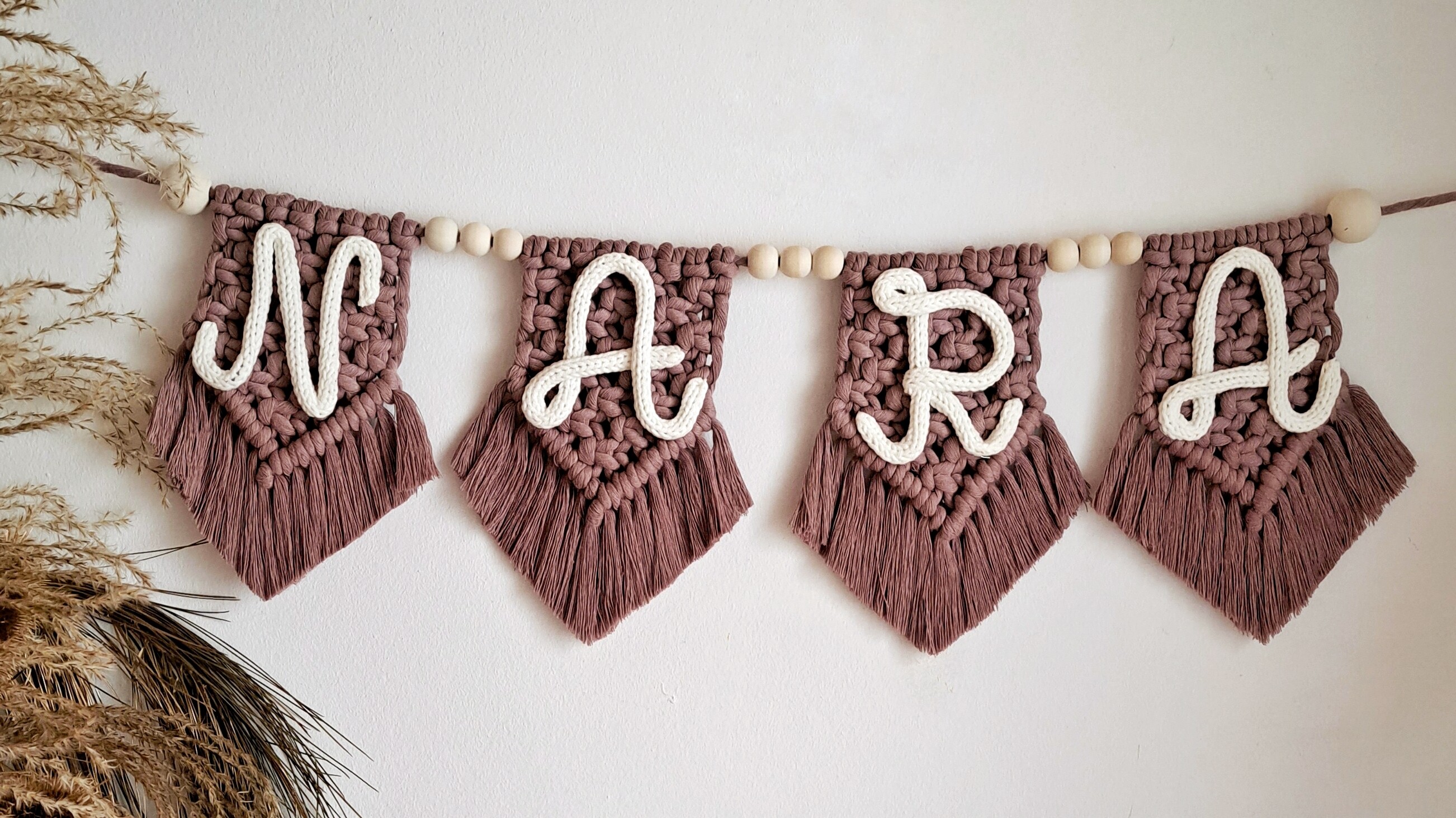 Litery są szydełkowane na drucie metalowym, aby zachować ich kształt.
