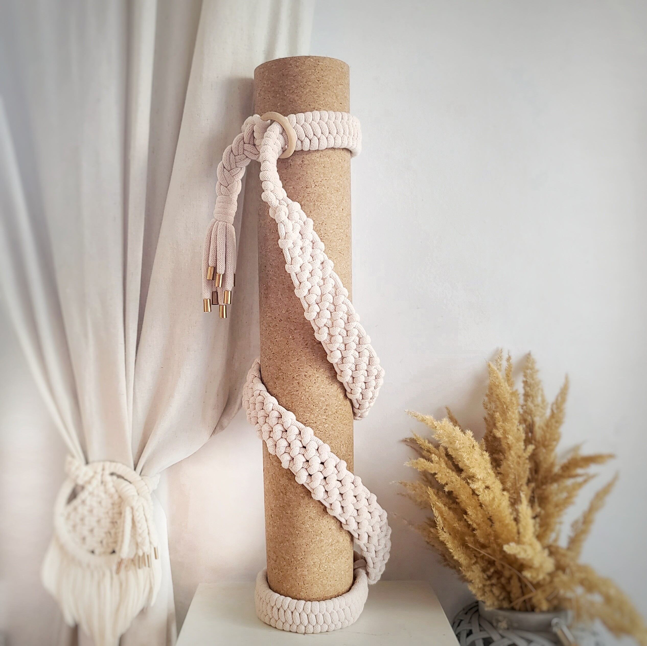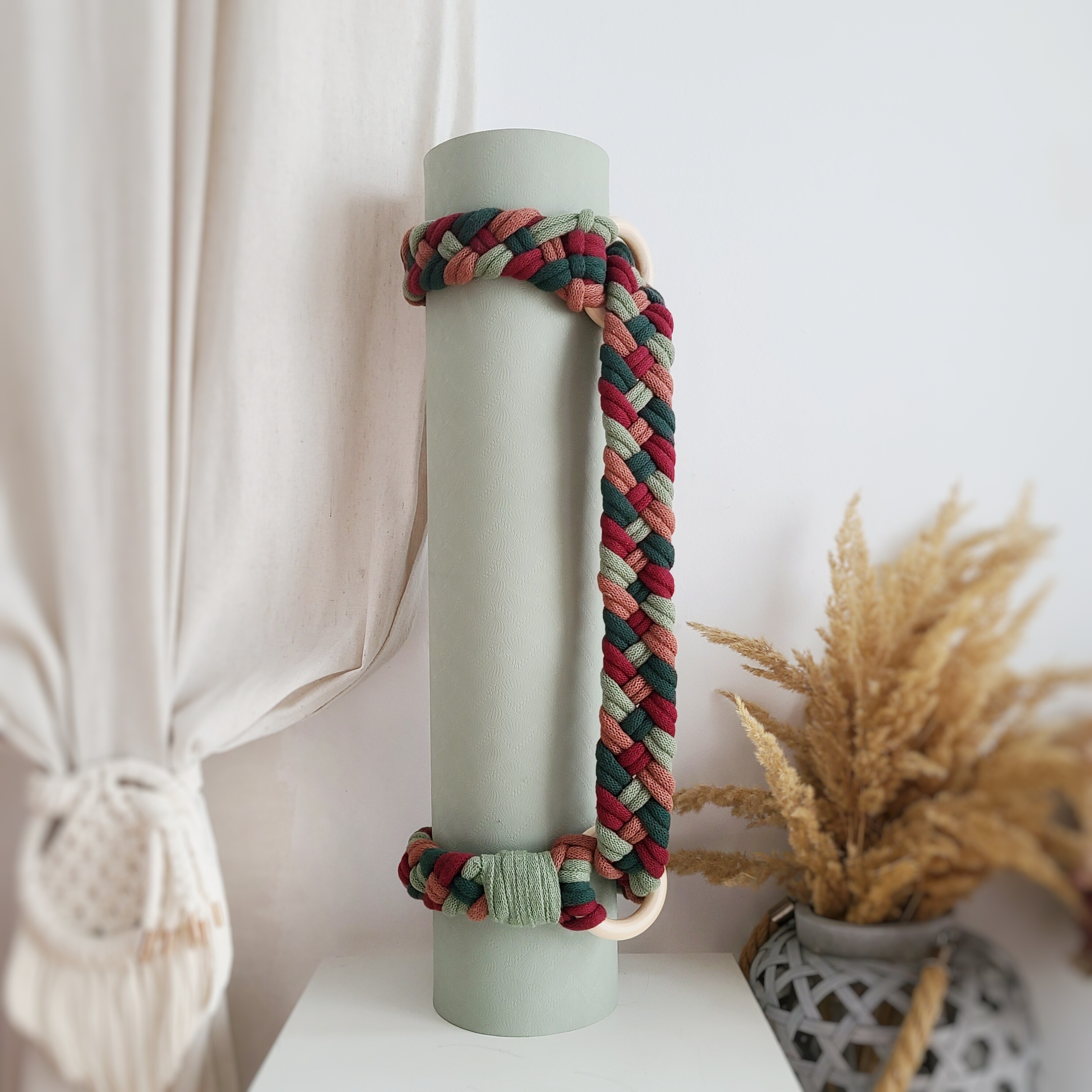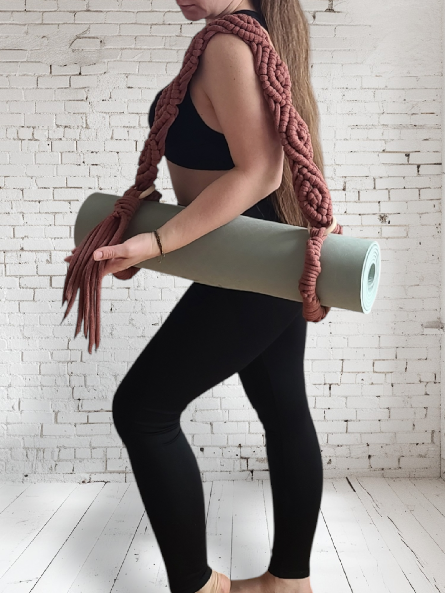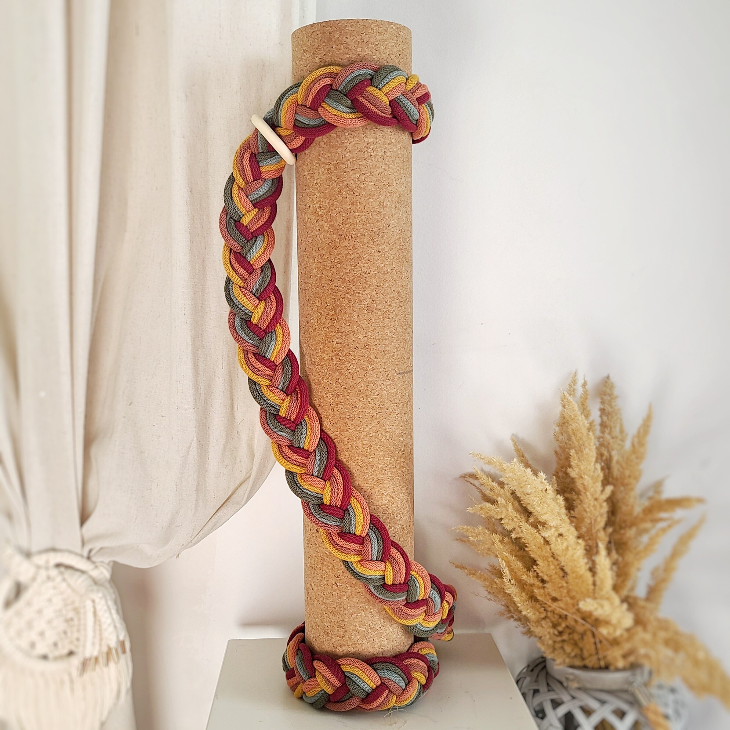 Miękka plecionka makramowa zapewnia komfort podczas noszenia maty.