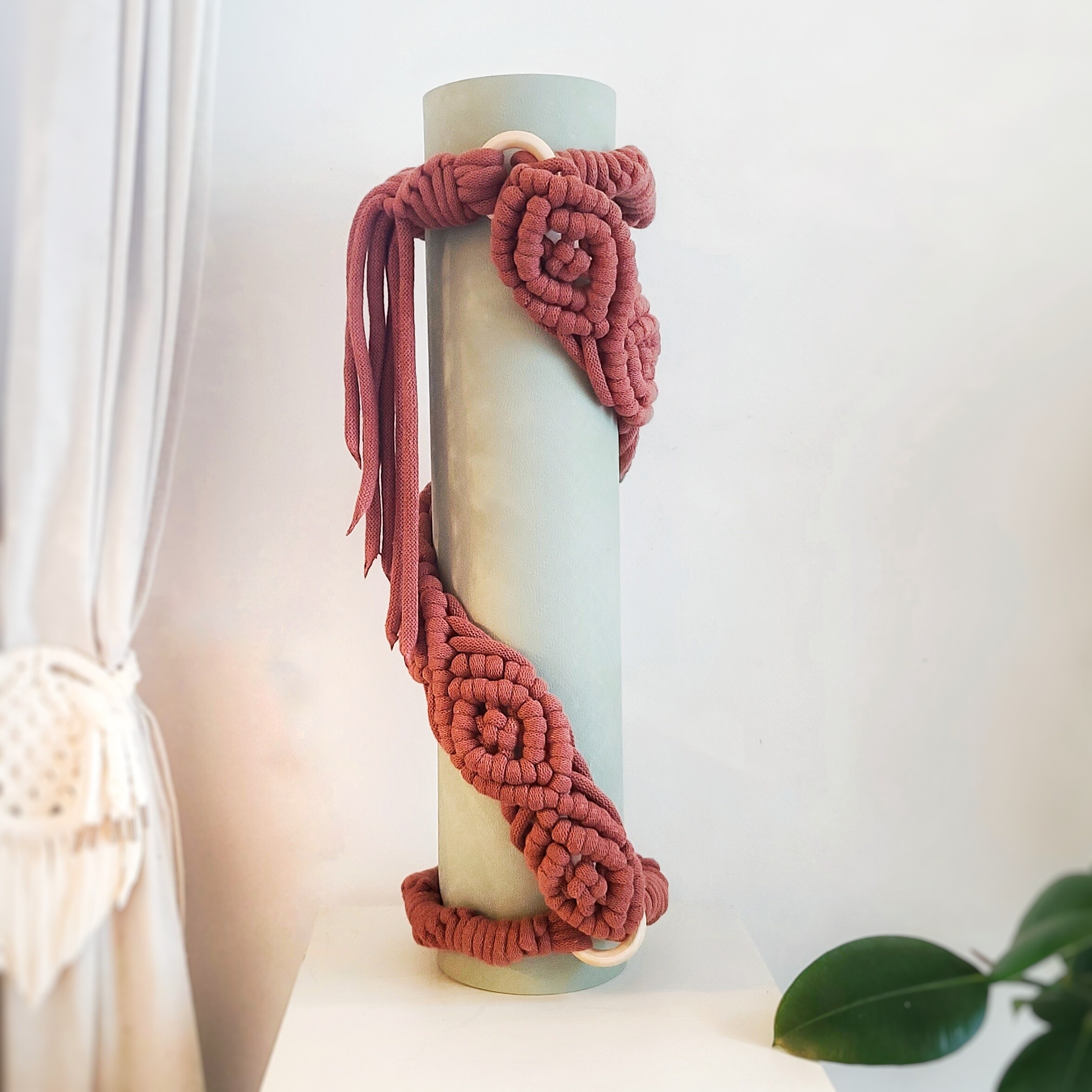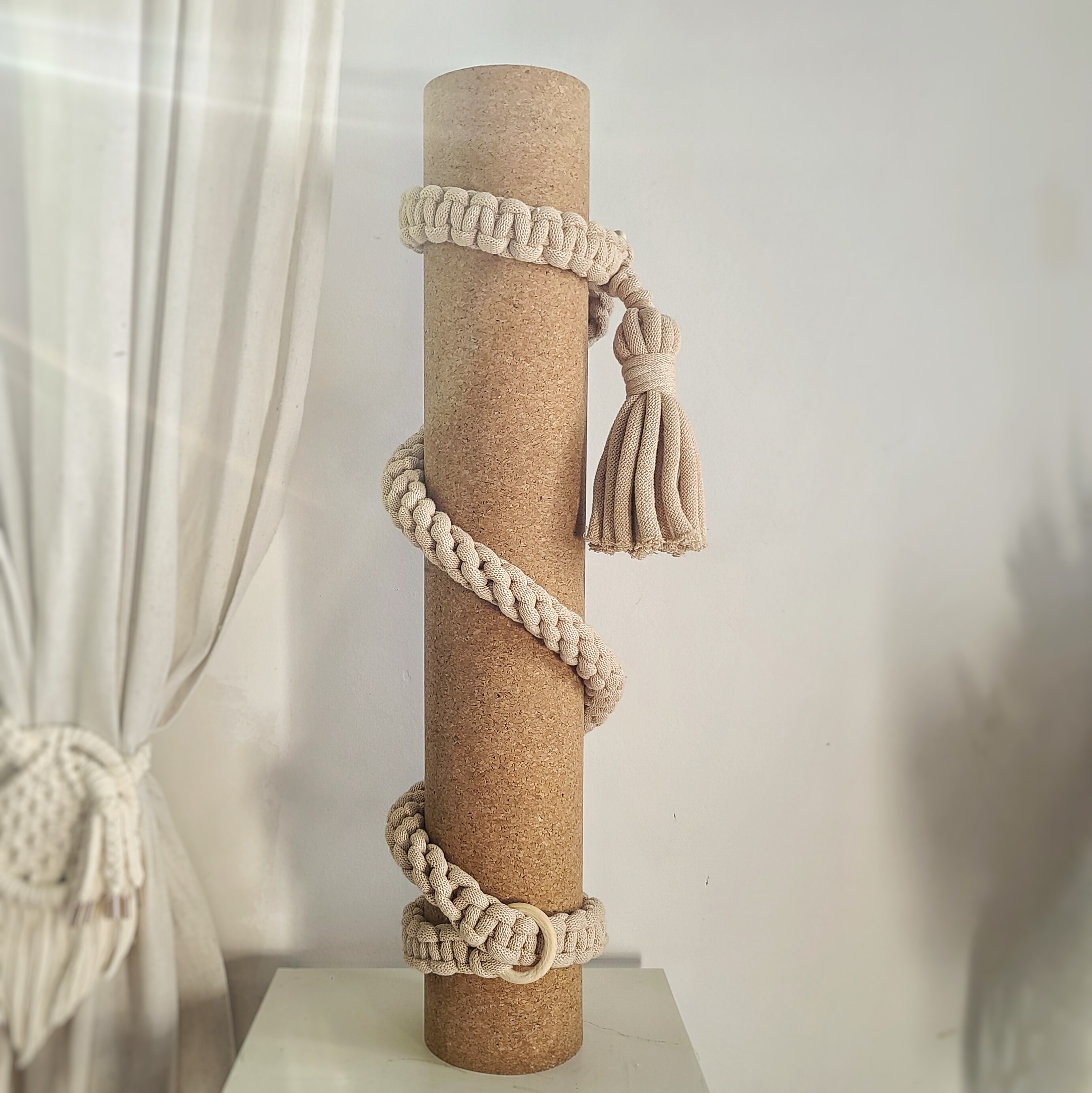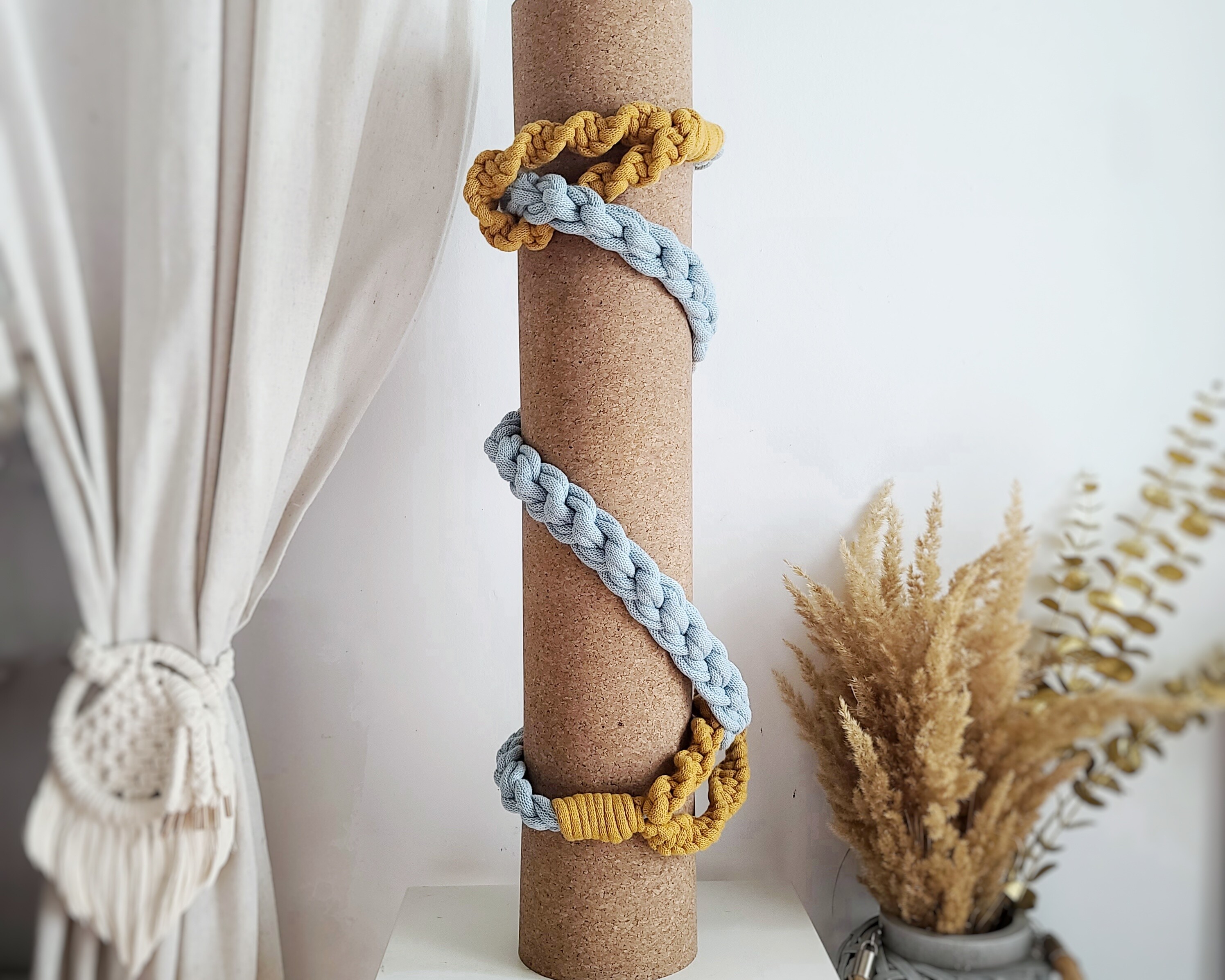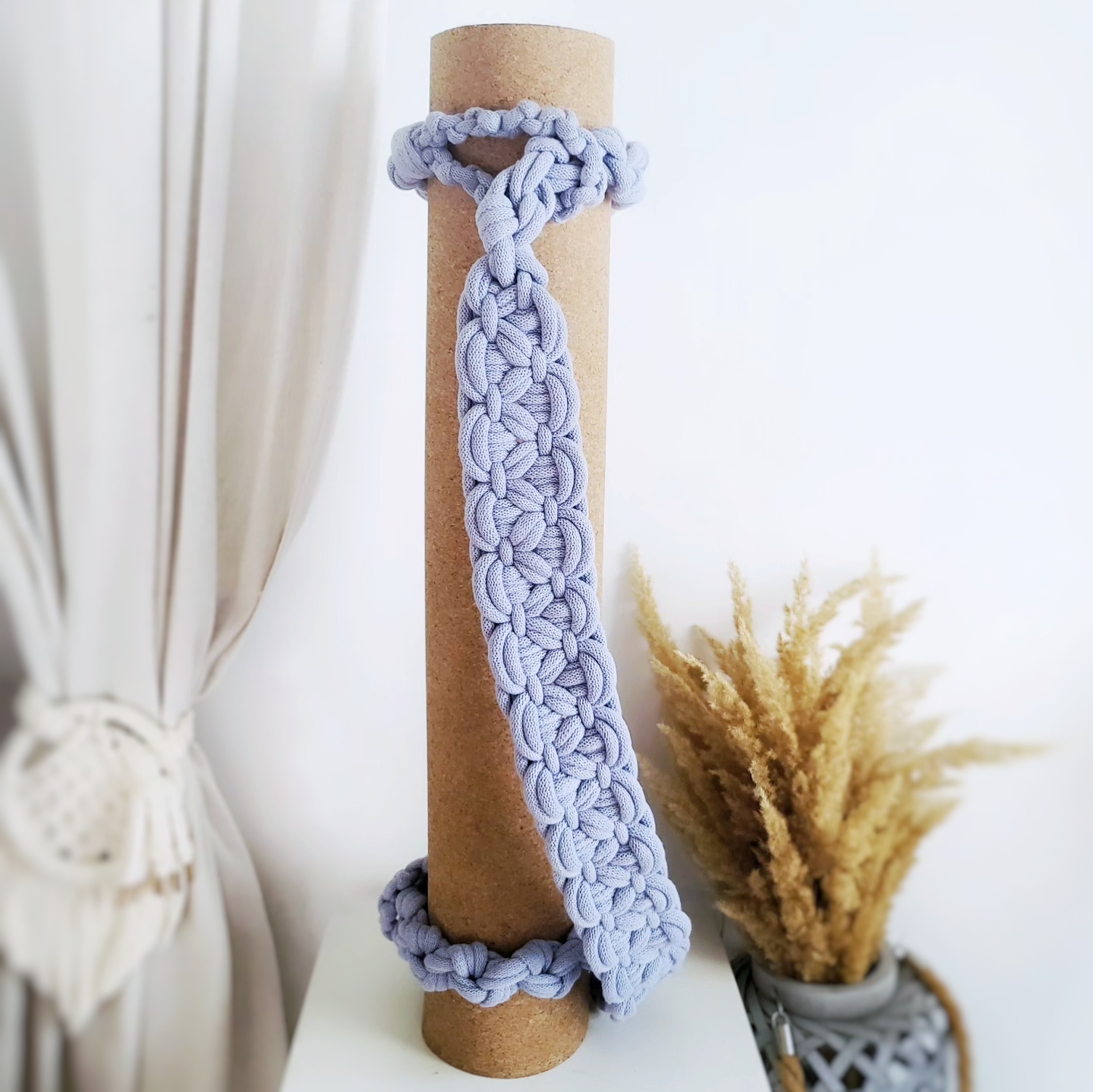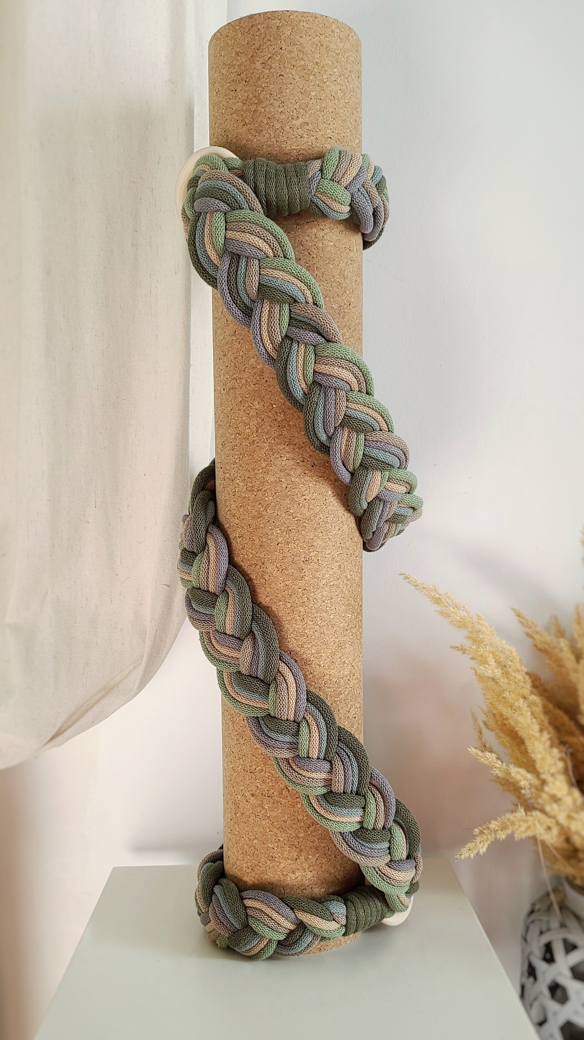 Miękka plecionka makramowa zapewnia komfort podczas noszenia maty.